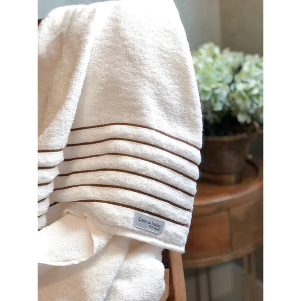 Os jogos de toalhas com 5 peças da Casa da Toalha incluem 2 toalhas banhão, 2 toalhas de rosto e 1 toalha de piso. Todas são em tecido 100% algodão com algodão Confort Soft e gramatura 500 g/m2. Essa toalha muito confortável de usar, você vai se encantar com a toalha banhão Essence.