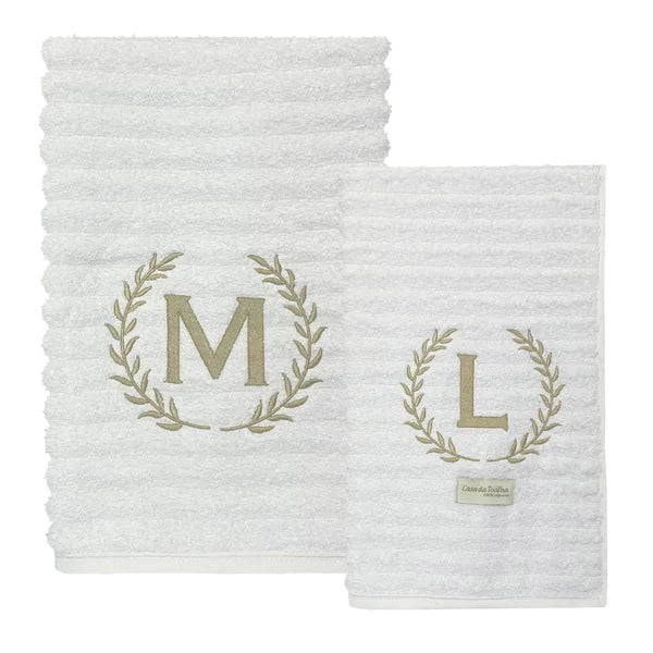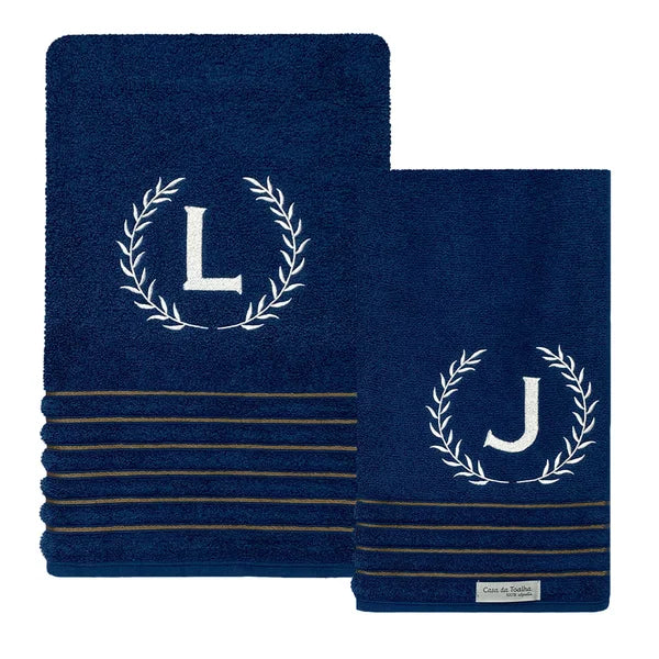 - Jogo de Toalha 2 Peças Fio Penteado 100% Algodão Bordada com monograma
