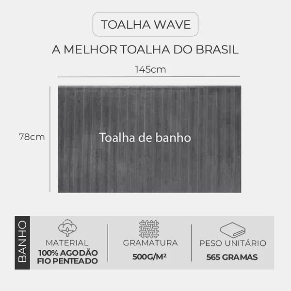 Jogo de Toalha Wave 5 Peças Gramatura 500g/m² Algodão Penteado Extra Macio